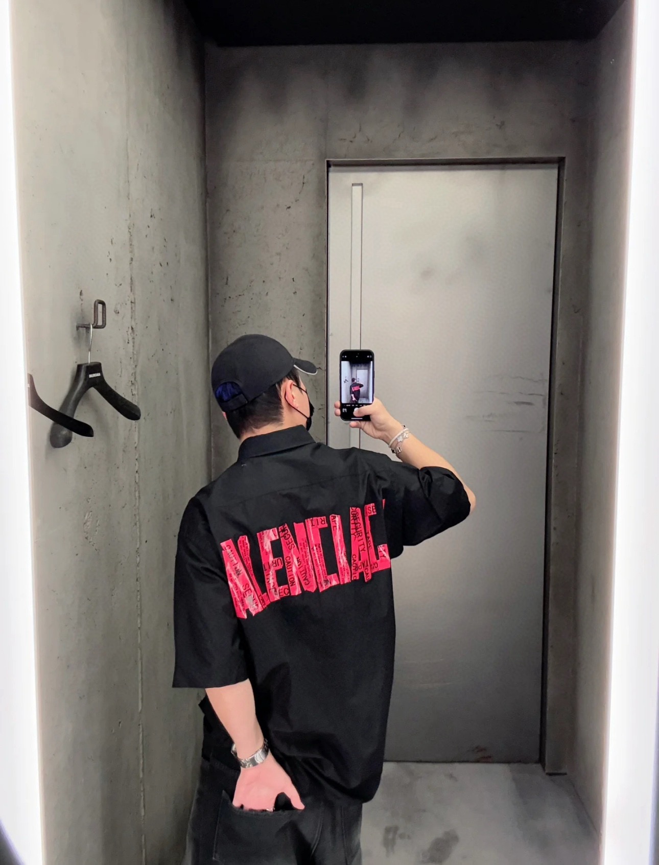 Balenciaga 玫红美纹纸胶带短袖衬衫