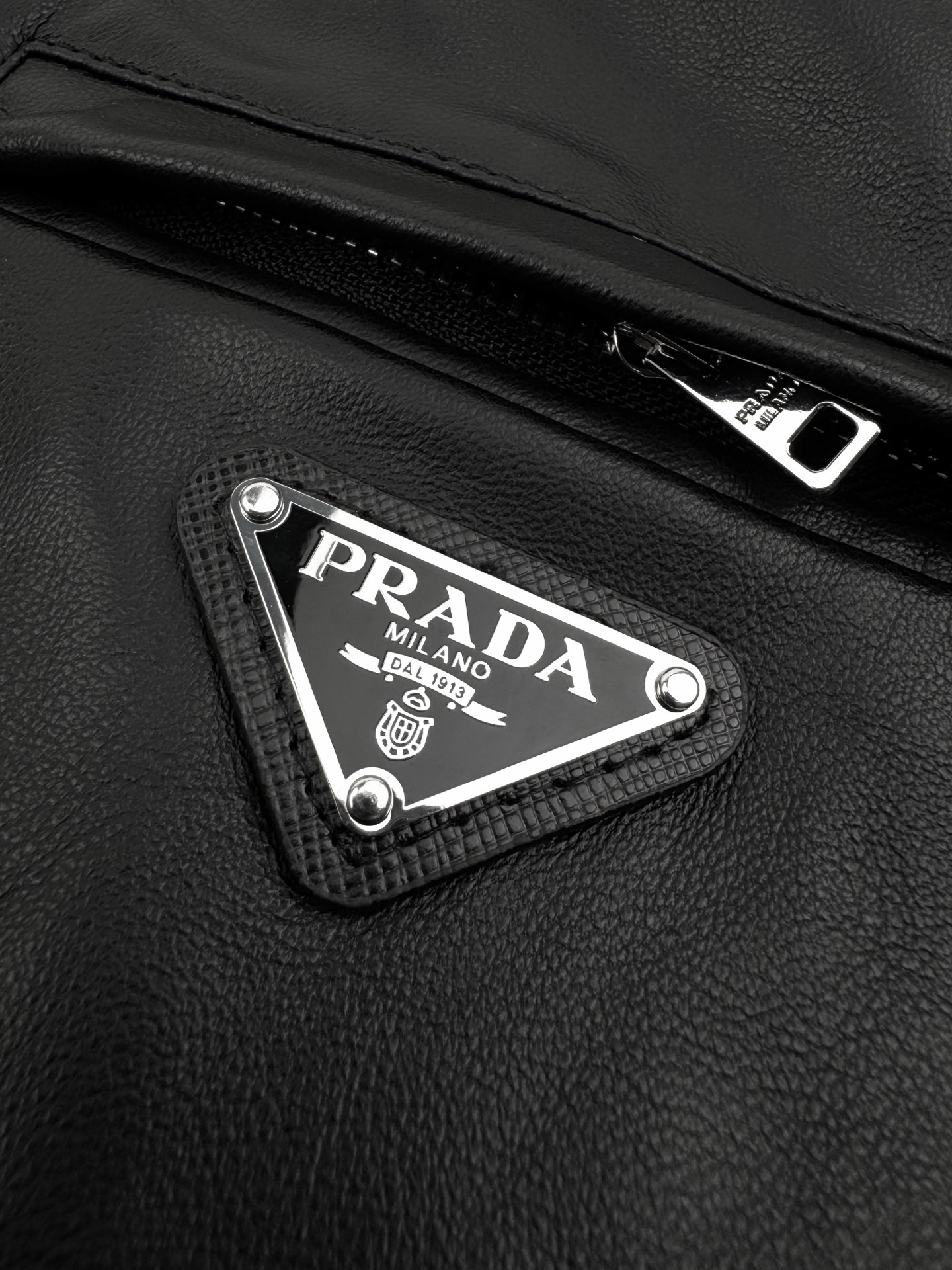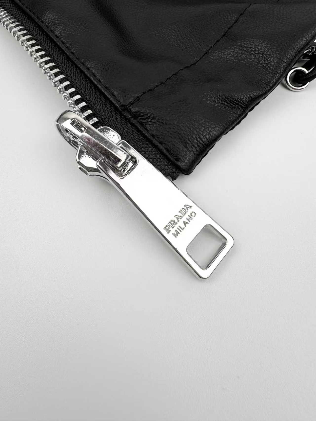 Prada 双面穿皮革尼龙连帽拉链口袋夹克皮衣外套