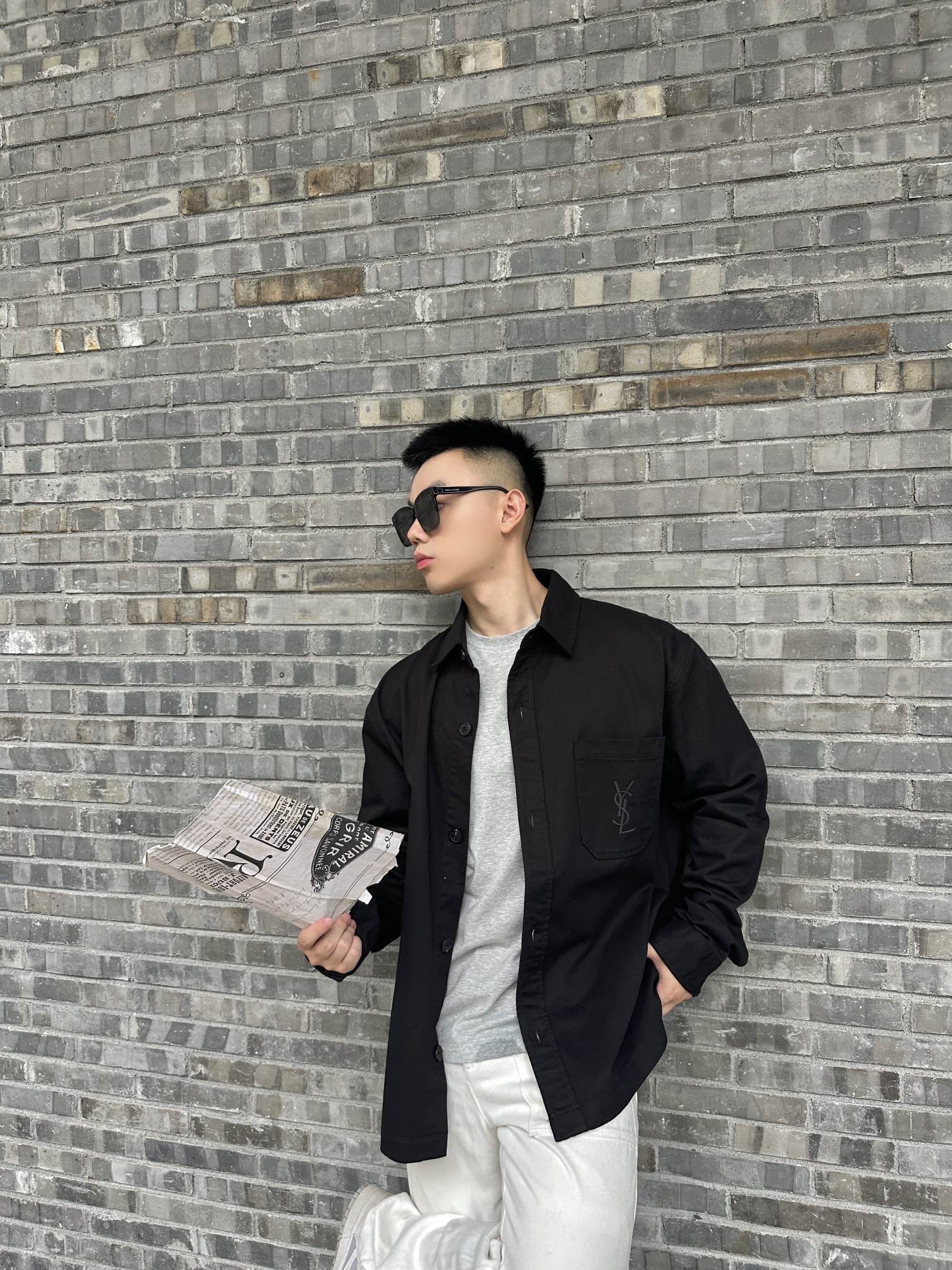 圣罗兰 标识刺绣衬衫式外套